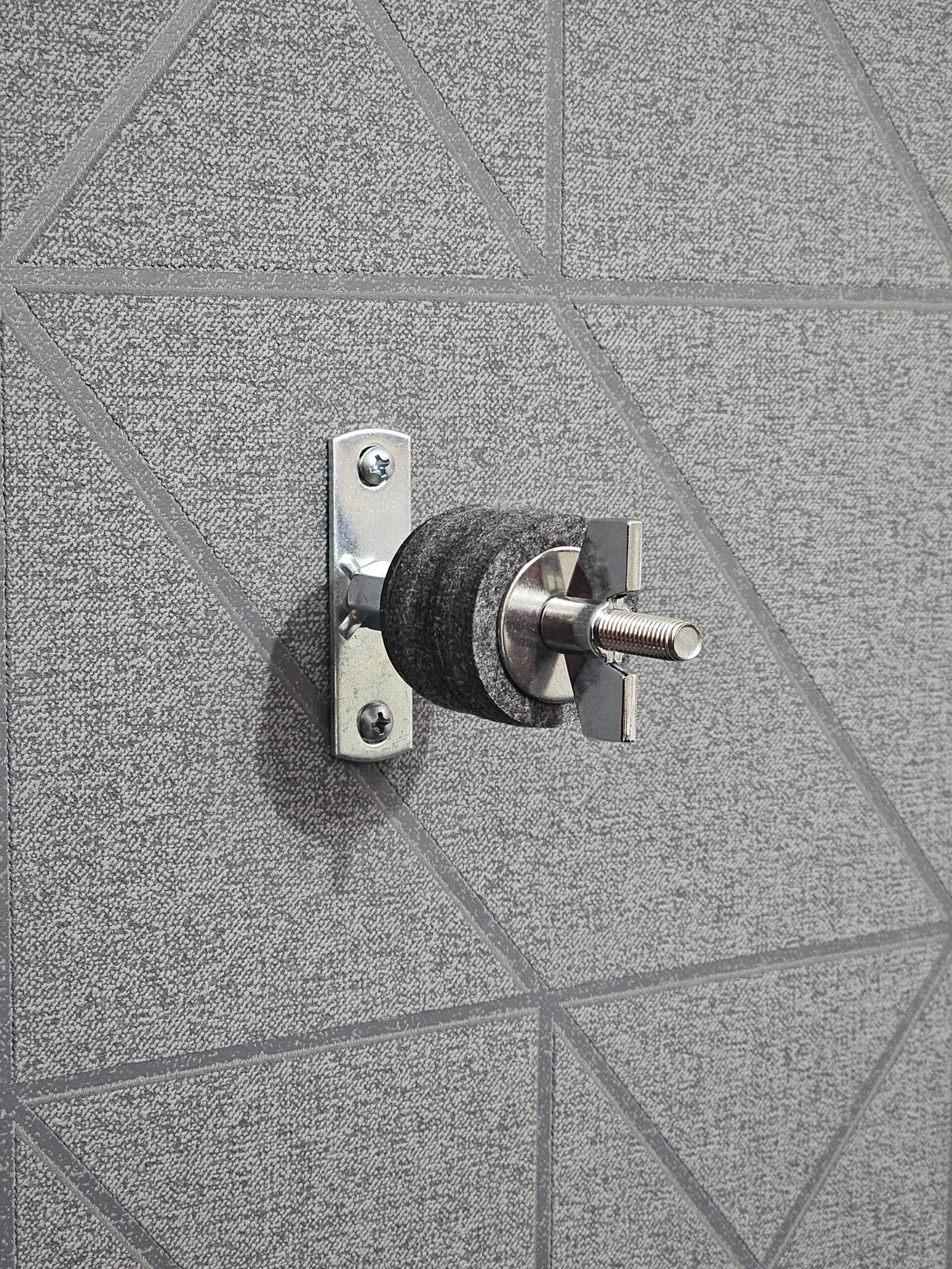 CymWall is thoughtfully engineered to replicate the familiar felt and sleeve setup of a traditional cymbal stand, ensuring your cymbals are displayed securely and authentically. Each mount features a supportive sleeve and felt system, mimicking the way cymbals are traditionally secured, protecting them from direct contact with metal surfaces. This design not only preserves the integrity of your cymbals but also gives the display a professional, performance-ready look that drummers will instantly appreciate.